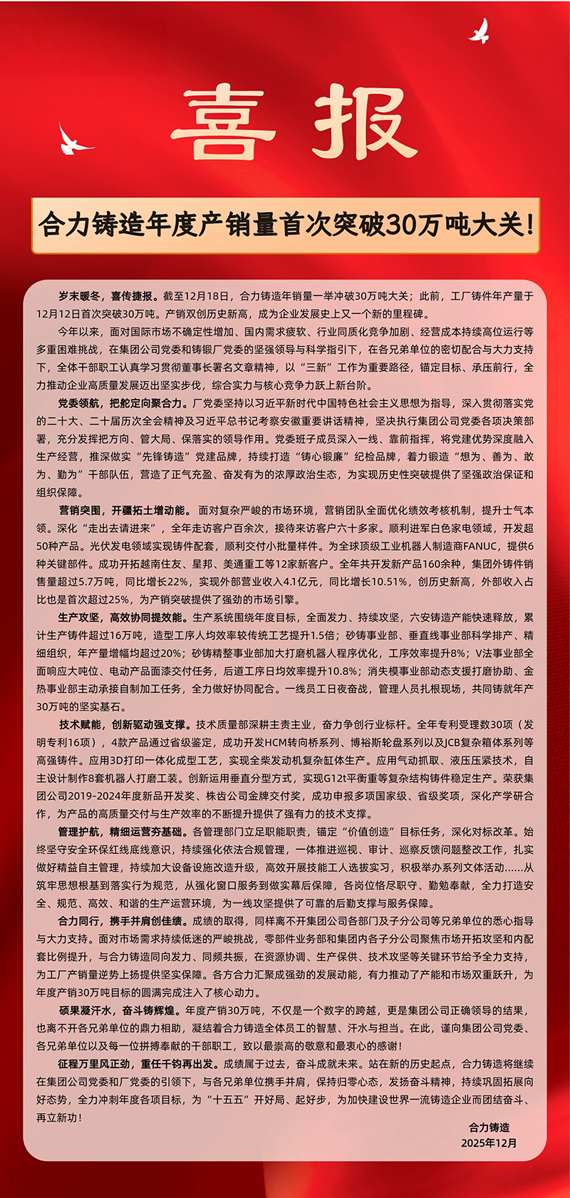 安徽合力股份有限公司合肥鑄鍛廠是安徽合力股份有限公司的核心企業(yè)之一,是中國鑄協(xié)副會(huì)長單位、安徽省鑄協(xié)會(huì)長單位、全國消失模與V法協(xié)會(huì)及學(xué)會(huì)副理事長單位、華東鑄協(xié)常務(wù)理事單位,系中國綠色鑄造示范企業(yè)、中國鑄造行業(yè)綜合百強(qiáng)企業(yè)、全國鑄鐵行業(yè)及安徽省鑄造行業(yè)排頭兵、中國鑄造行業(yè)教育培訓(xùn)基地。2015年企業(yè)成立了“國家開放大學(xué)鑄造學(xué)院學(xué)習(xí)中心”。
