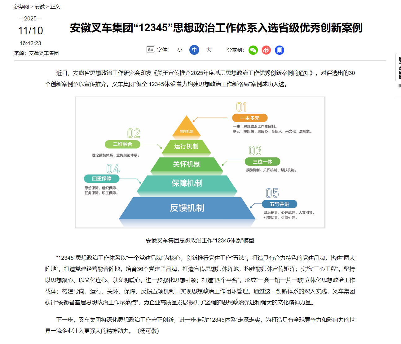 【新華網(wǎng)】安徽叉車集團(tuán)“12345”思想政治工作體系入選省級優(yōu)秀創(chuàng)新案例